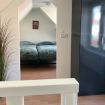 Im Obergeschoss des Ferienhauses befinden sich zwei Zimmer.Das erste Zimmer verfügt über freien Stauraum und einem Kleiderschrank. Auf Wunsch ist hier Platz für ein Babybett. Das 2. Zimmer im Obergeschoss ist das Schlafzimmer.