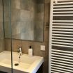 Das Badezimmer, welches sich im Erdgeschoss befindet, verfügt über eine Dusche, einem Waschbecken und einem Wc. Direkt neben dem Badezimmer befindet sich das Schlafzimmer (ebenfalls Erdgeschoss). Von der Küche aus gibt es eine Türe zum Garten. Im eingezäunten Garten befindet sich eine große Gartengarnitur.