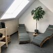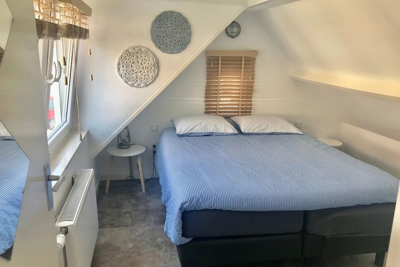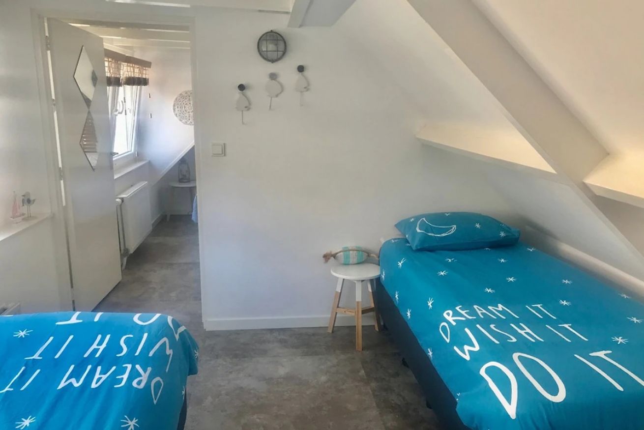 Im Obergeschoss des Ferienhauses befinden sich zwei Schlafzimmer. Das erste Schlafzimmer verfügt über ein großes Boxspringbett (160 x 200) und das andere Schlafzimmer über zwei separate Boxspringbetten, diese zusammengeschoben werden können. Das Ferienhaus ist ideal, um mit einer Familie mit kleinen Kindern oder zu zweit zu übernachten.