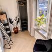 Wenn Sie durch die große, 2 türige Glastüre gehen, stehen Sie im Eingangsbereich dieser mit liebe gebauter Suite. Rechts, wenn Sie durch die Türe gehen ist ein Ankleidezimmer mit Spiegel und Schrank. Dort können Sie Ihre Kleider ablegen, oder sich für ein gemütliches Abendessen im Fischerdorf zurecht machen. Der Essbereich ist ausgestattet mit einem runden Holztisch und bequemen Stühlen.
